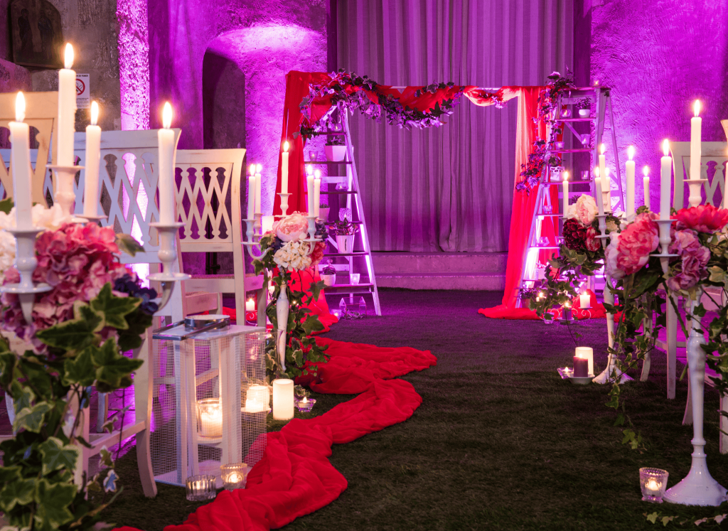 The Chapel: a former Romanesque chapel converted into a reception venue. It can accommodate 80 guests for a banquet and up to 100 people for a ceremony.