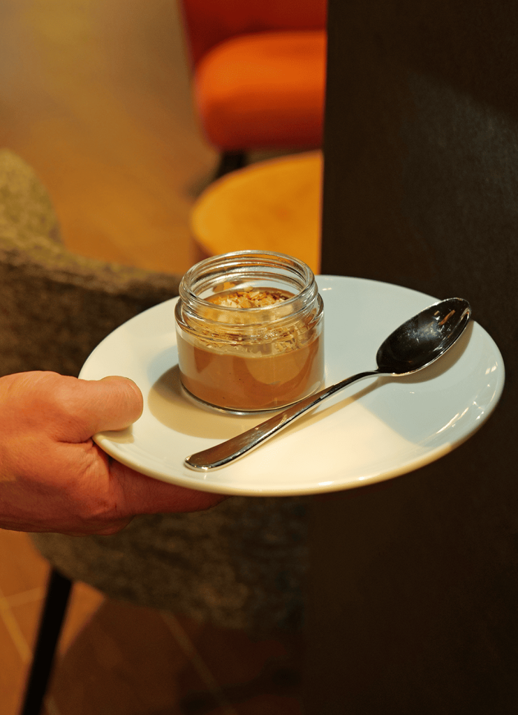 The warm ambiance and understated elegance of the space make it an ideal setting for enjoying a delicious moment — whether with family, friends, or for a business dinner.